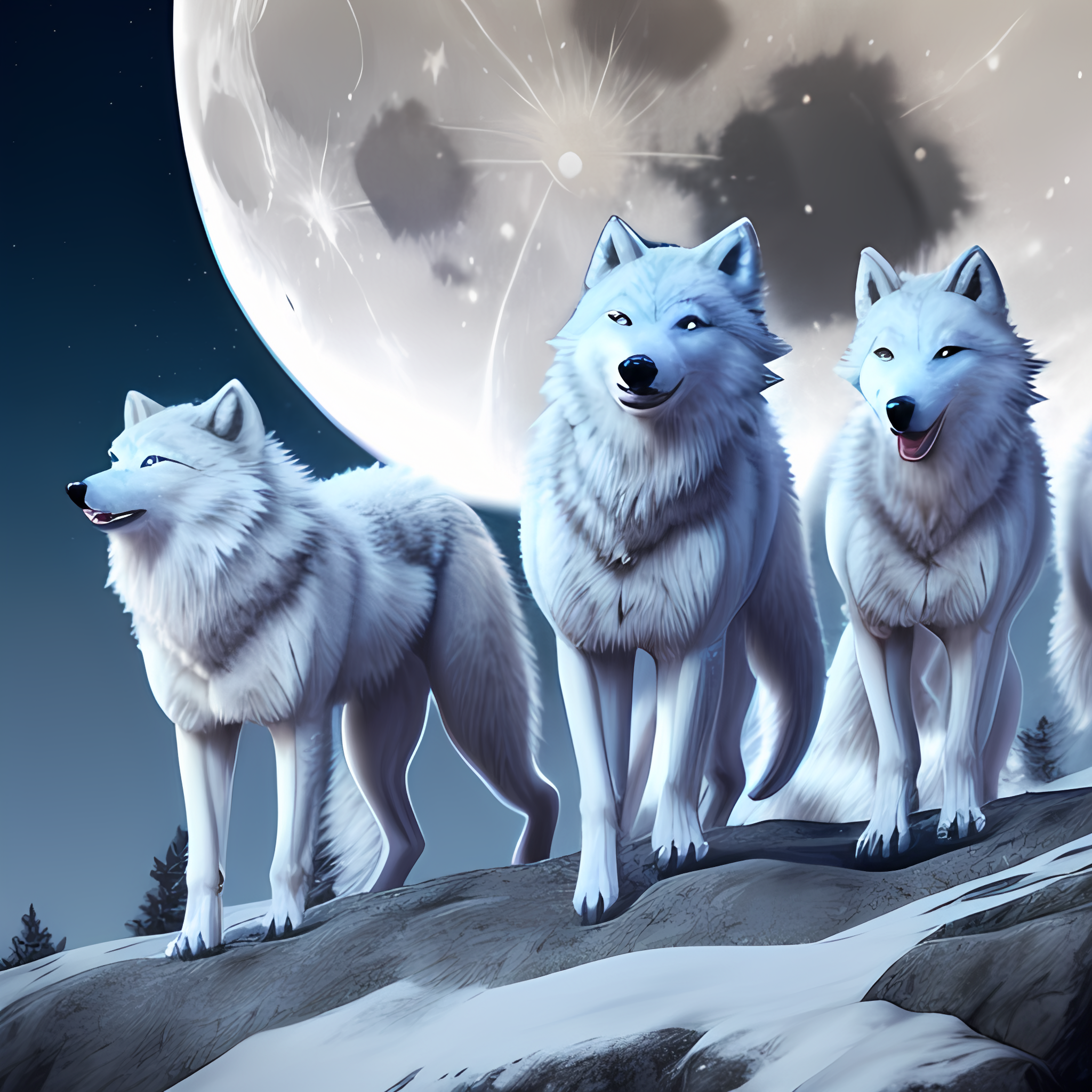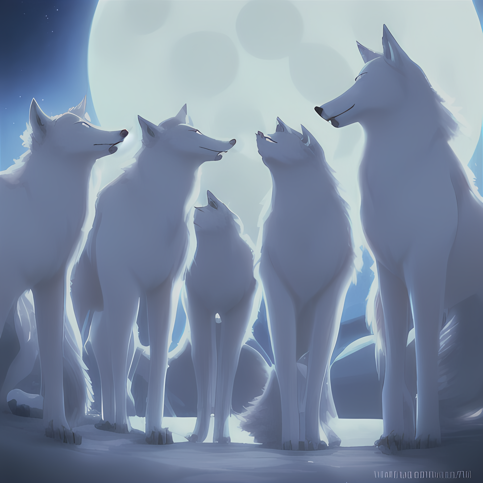 'A pack of arctic wolves howling at the moon'
