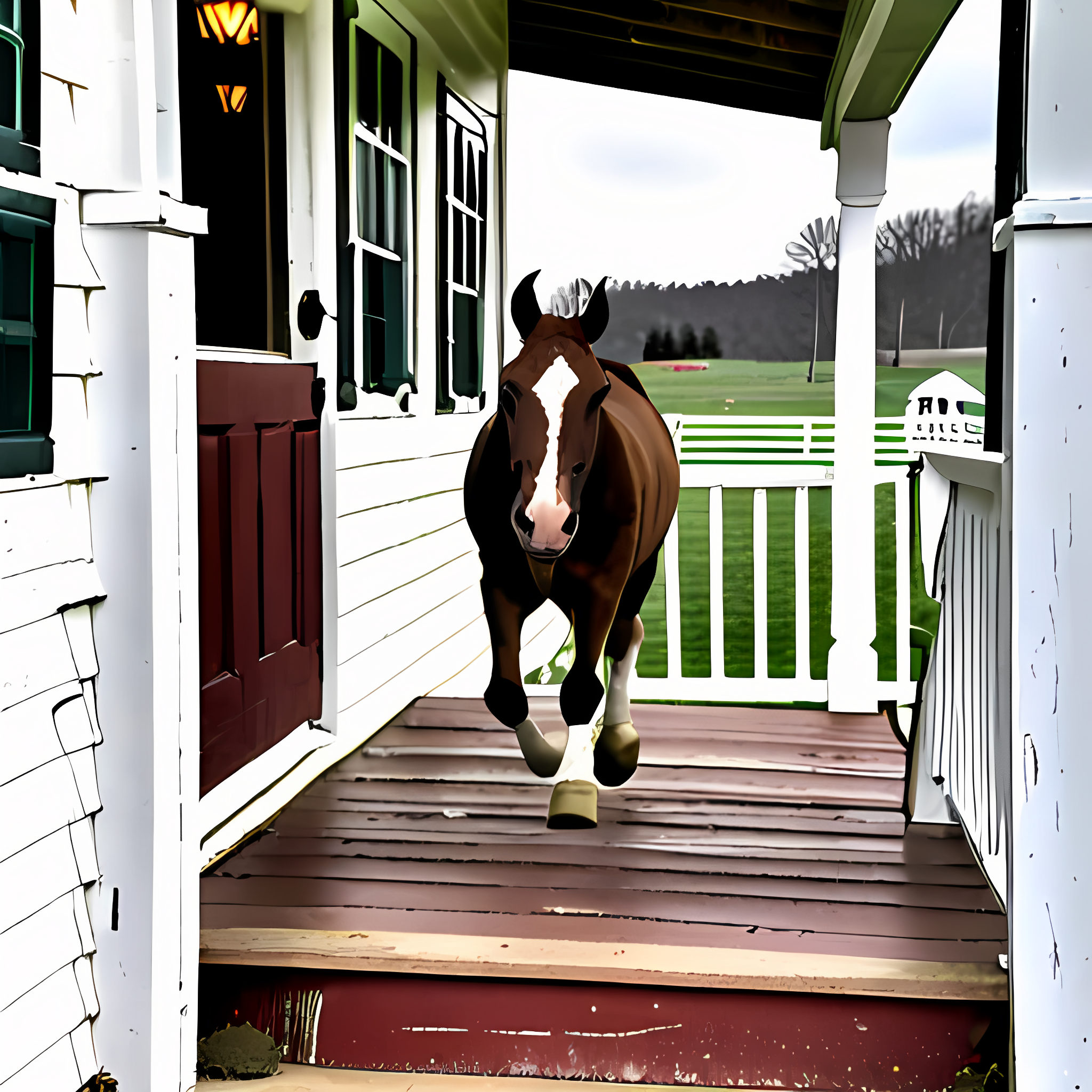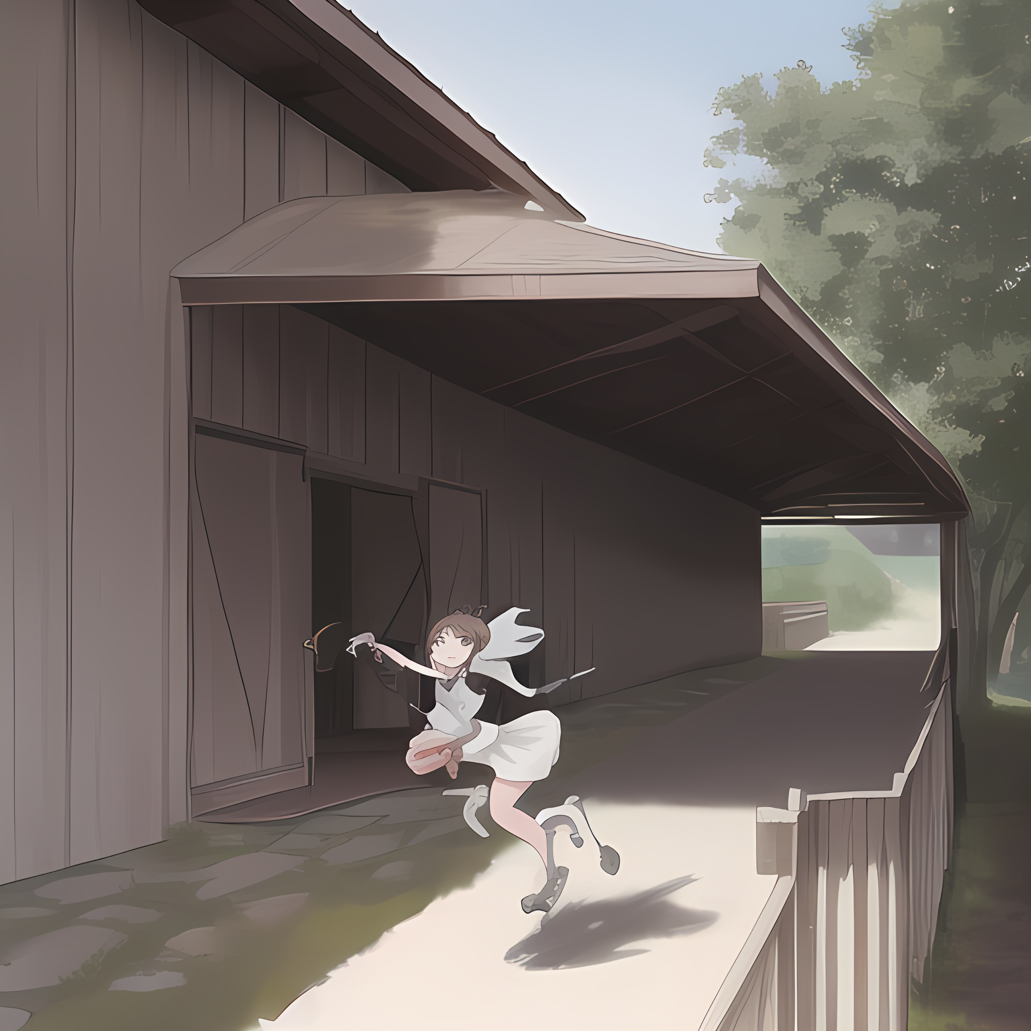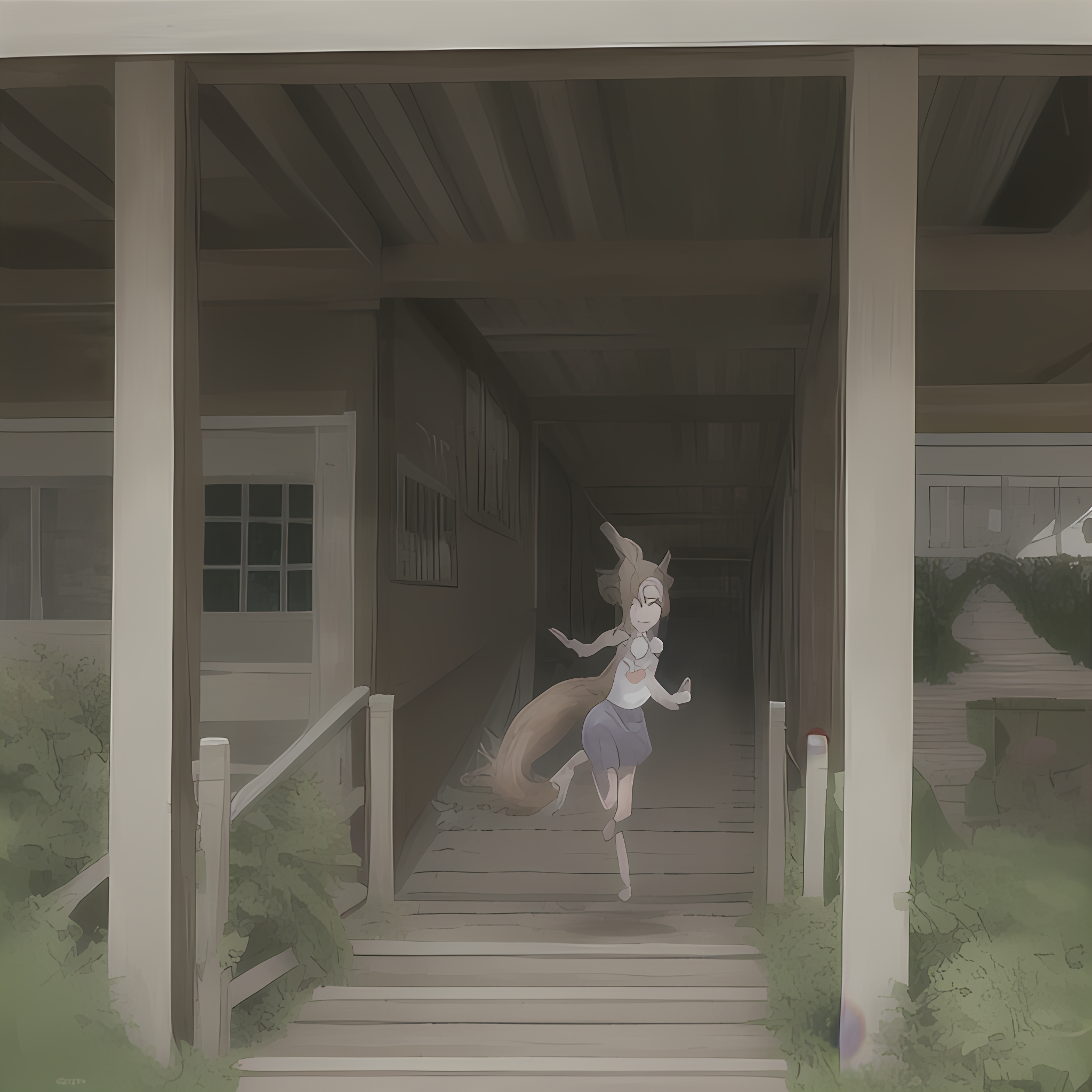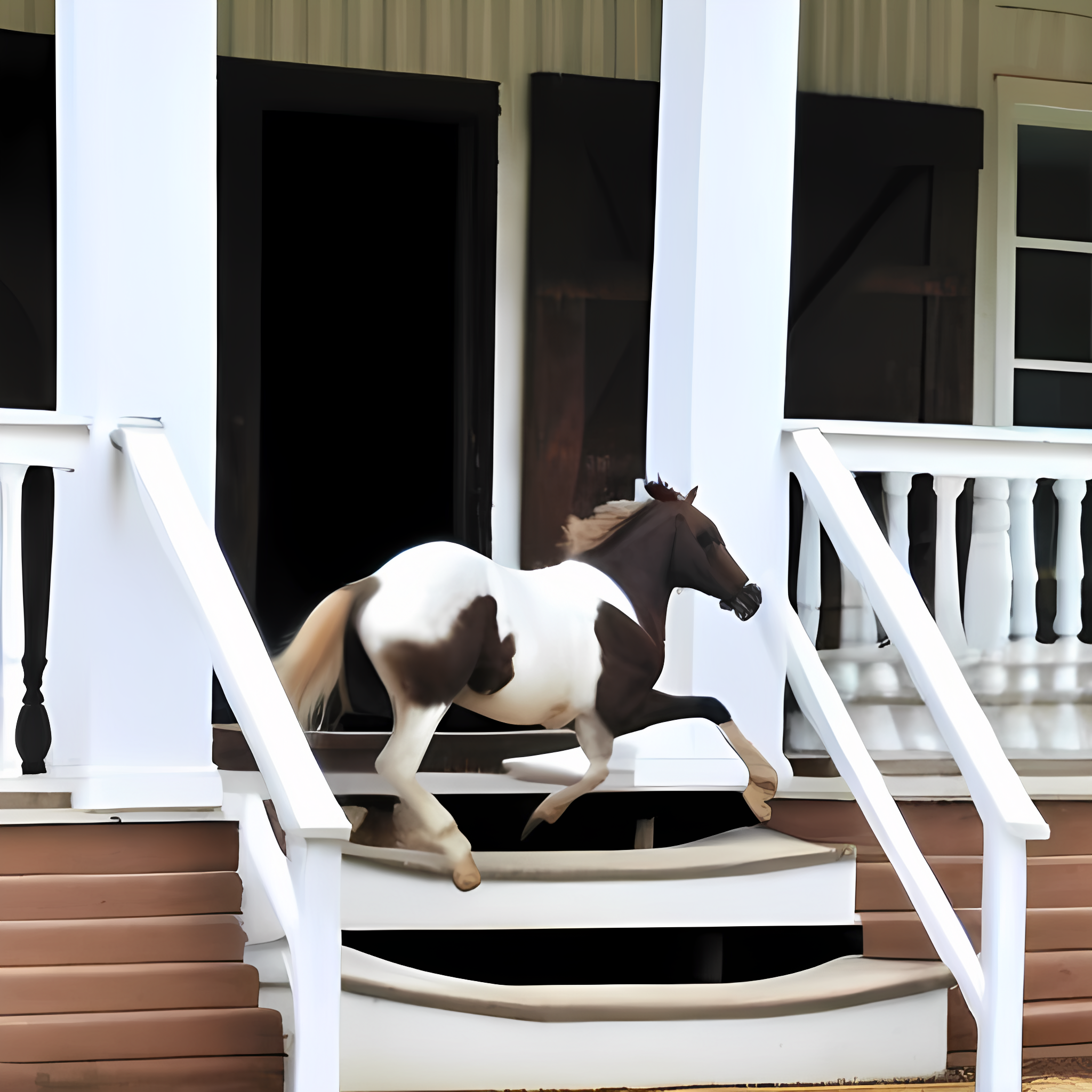 'MILLIE PARKER (6) races down the porch steps and turns toward the barn and stables.'