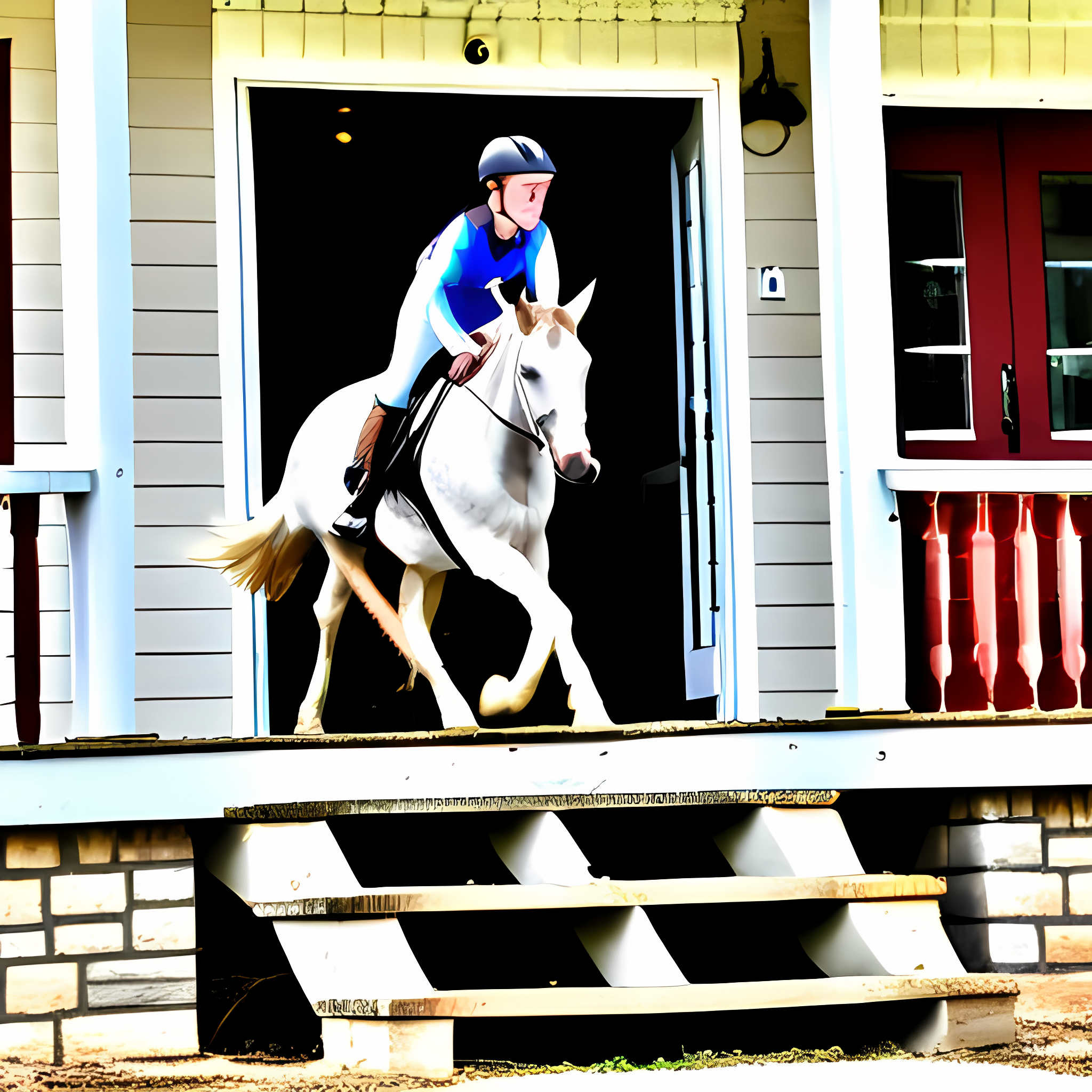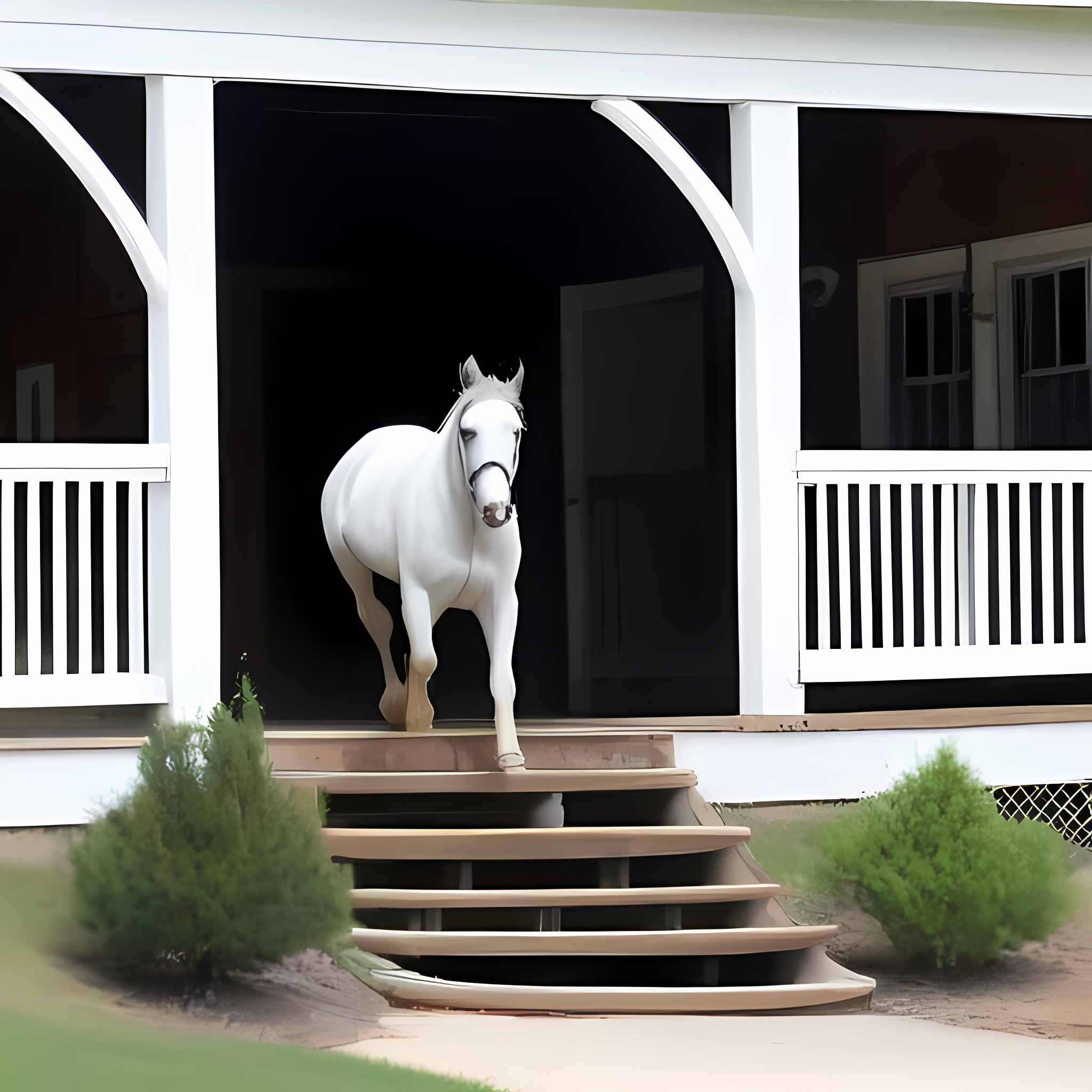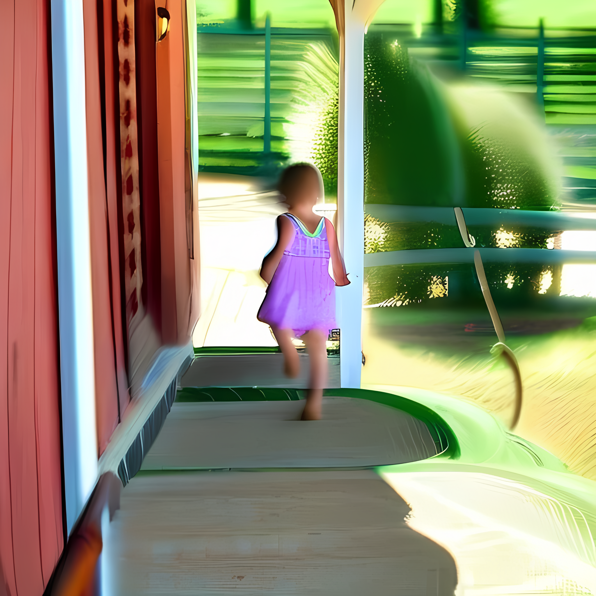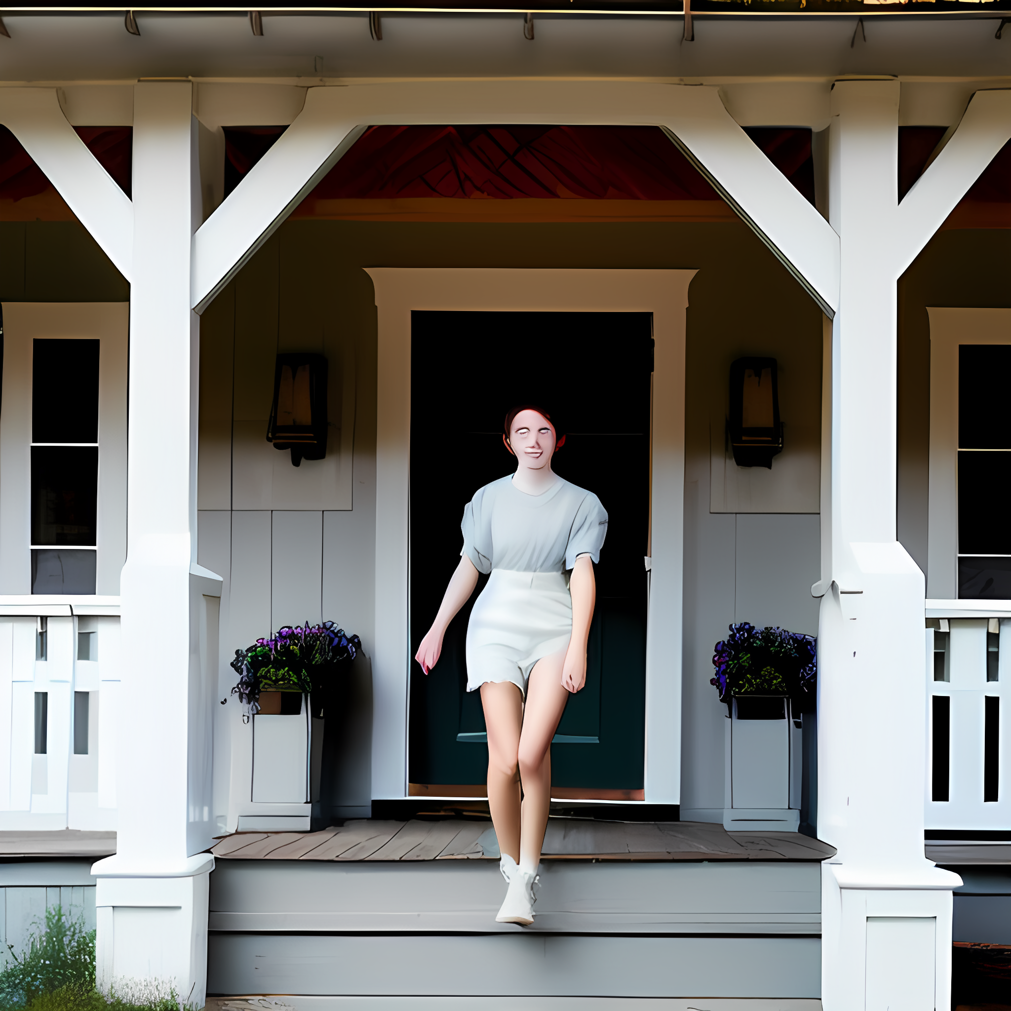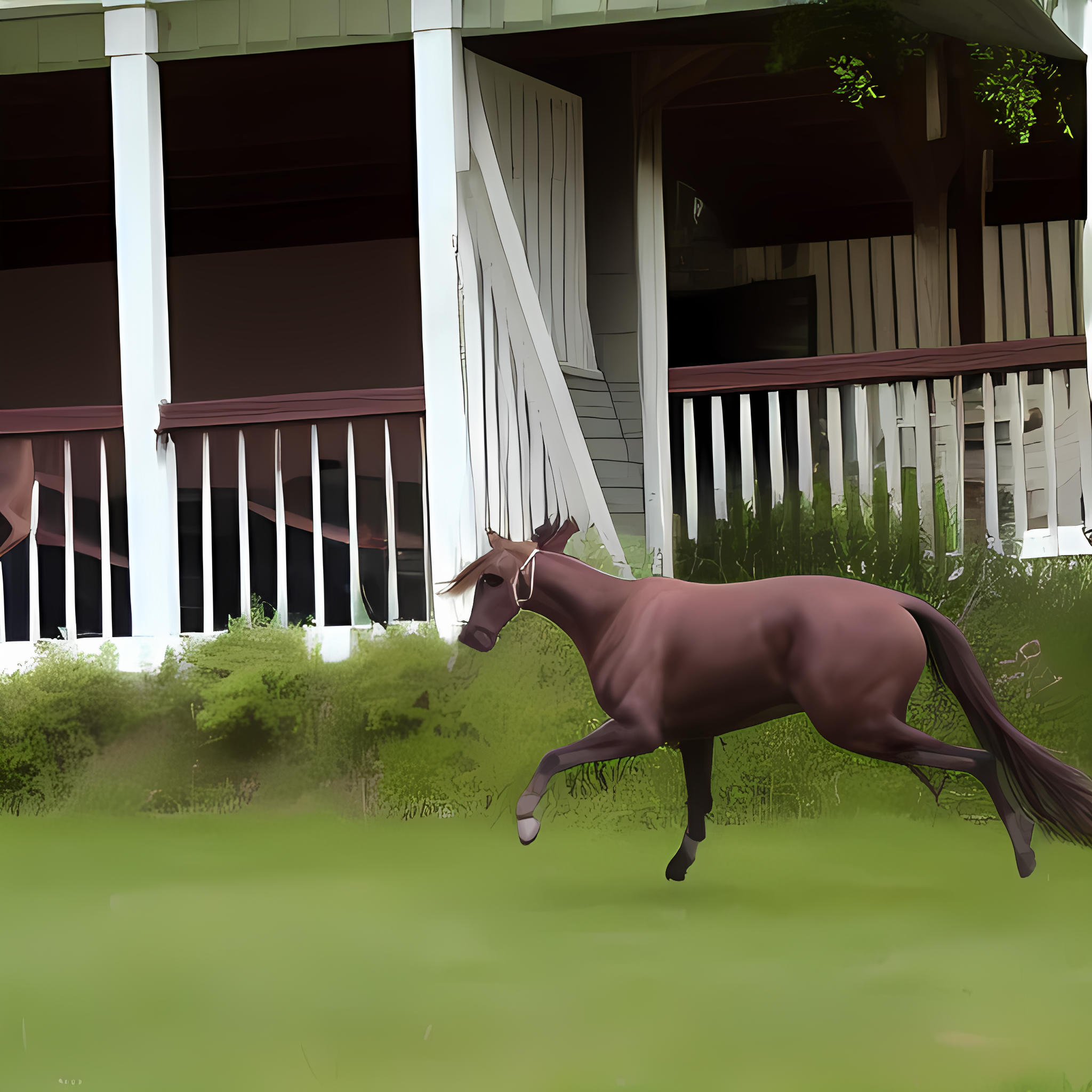 'MILLIE PARKER (6) races down the porch steps and turns toward the barn and stables.'