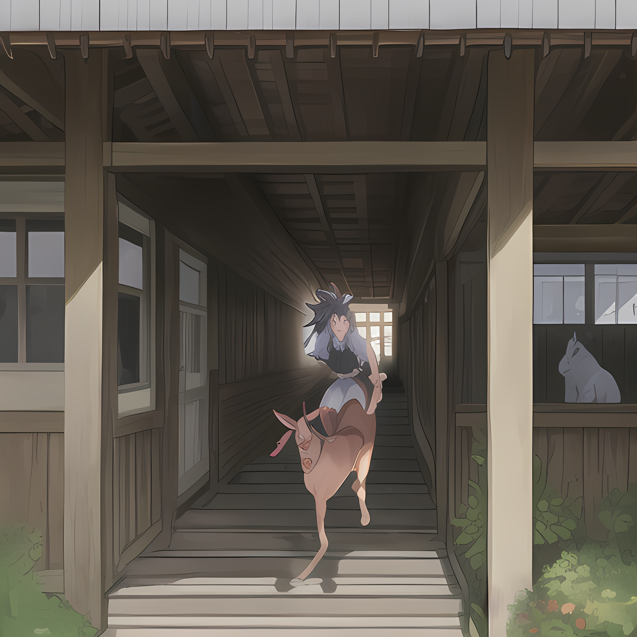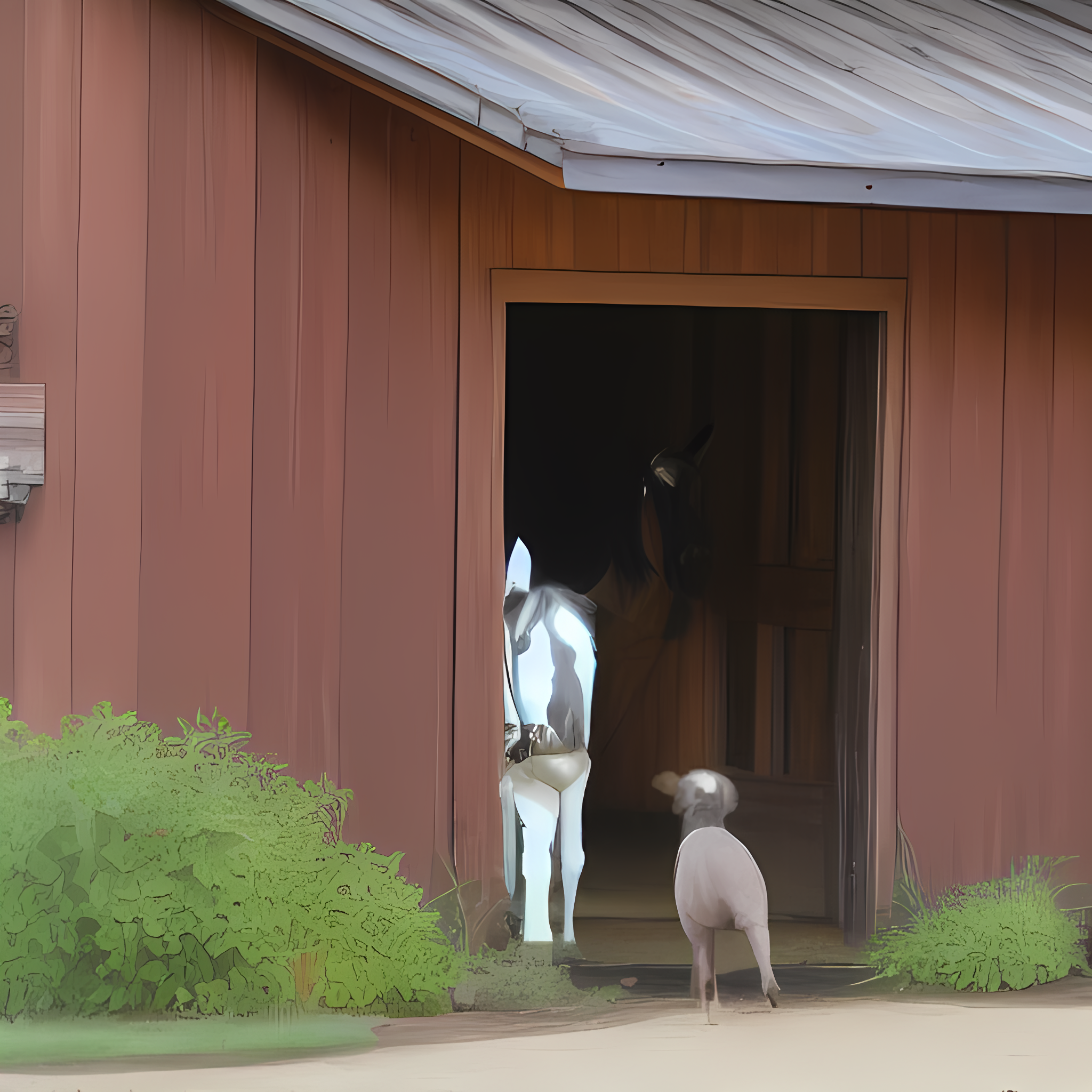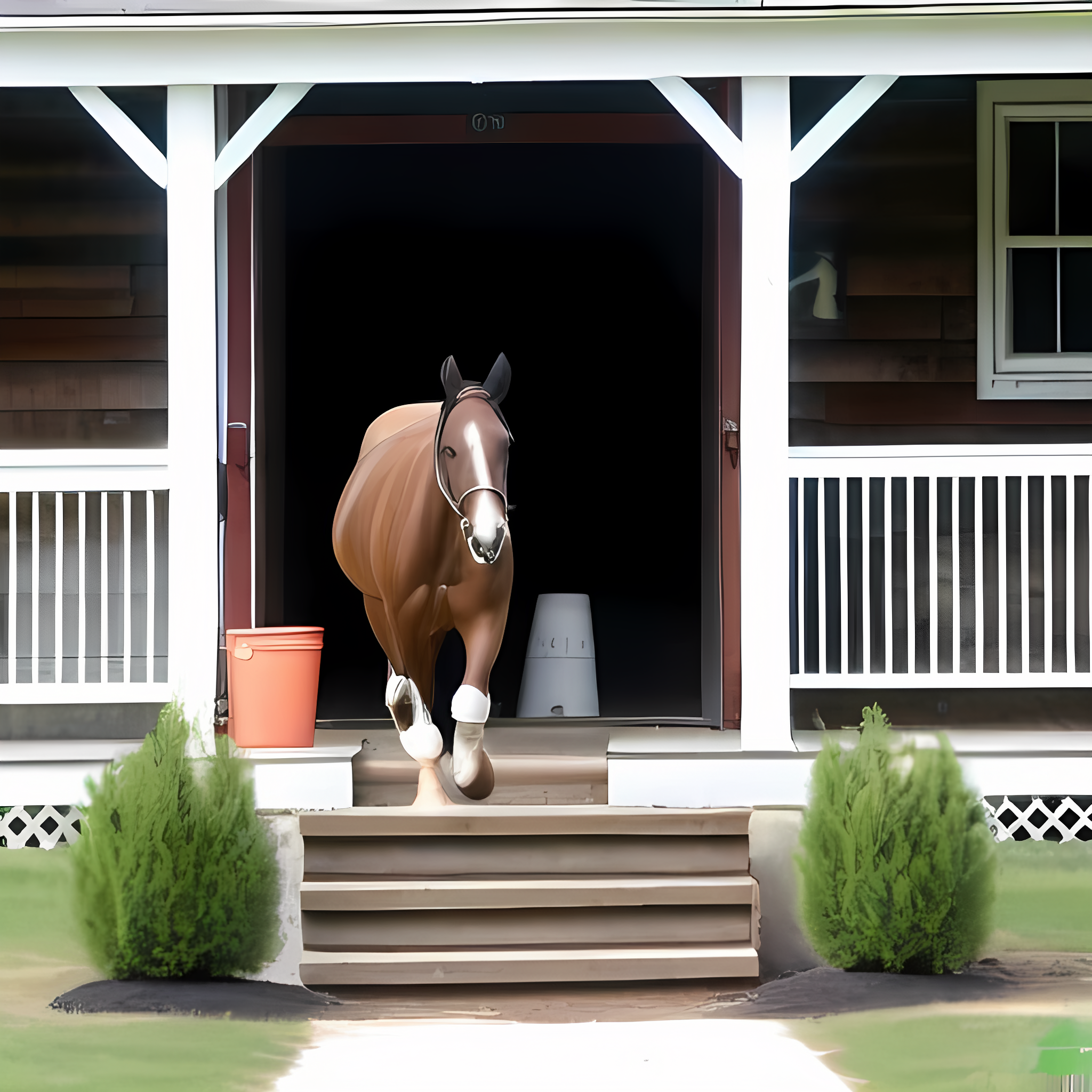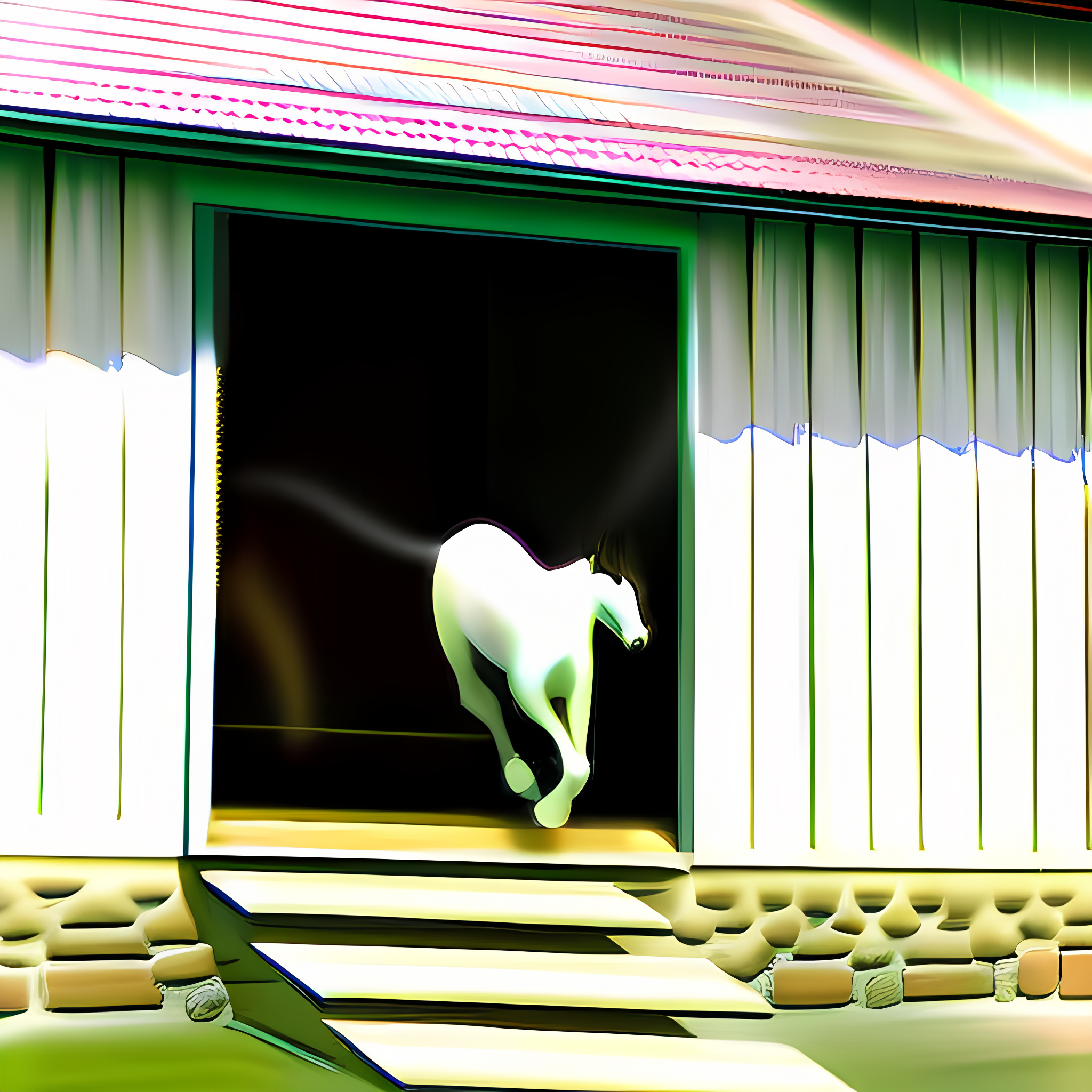 'MILLIE PARKER (6) races down the porch steps and turns toward the barn and stables.'